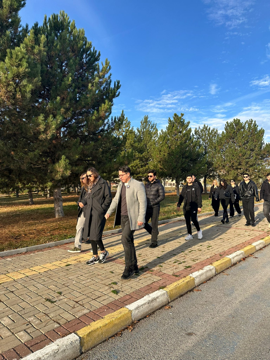 Spor Bilimleri Fakültesi öğrencileri ve akademik-idari personeli, Rekreasyon Uygulamaları Dersi kapsamında düzenlenen etkinlikte bir araya geldi. 10 Kasım 2025 Pazartesi günü saat 08.45’te Spor Salonu önünde toplanan katılımcılar, büyük bir coşku ve saygı içerisinde “ATA’ya Saygı Yürüyüşü” gerçekleştirdi.